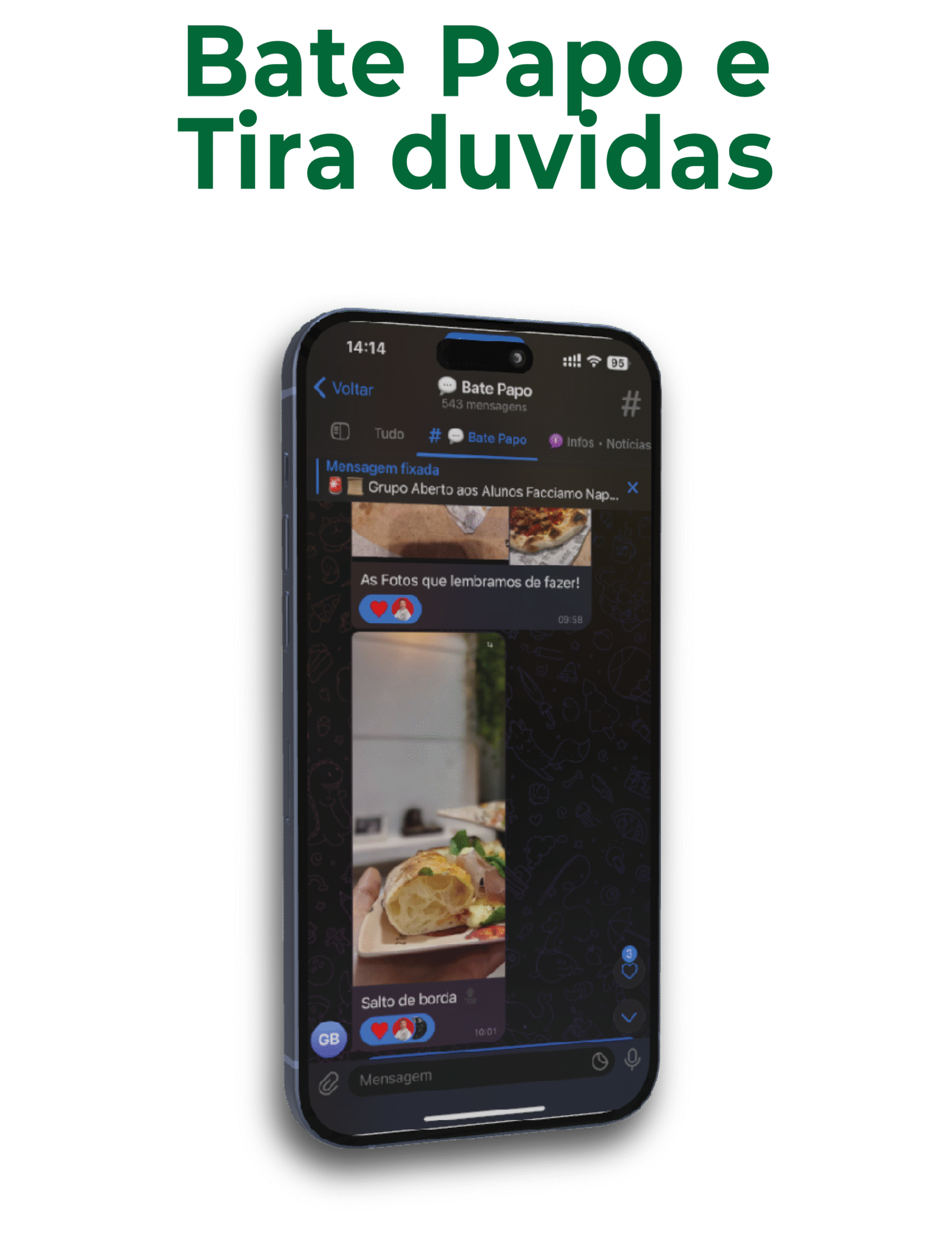Com certeza, tem descontos que a economia valem 2x o valor do curso. Na nossa comunidade exclusiva para alunos, você encontra conteúdos exclusivos, que são disponibilizados apenas dentro da comunidade, informações, notícias, novidades, cupons promocionais, bate babo, suporte, uma infinidade de coisas. Um verdadeiro paraíso para quem curte pizza.